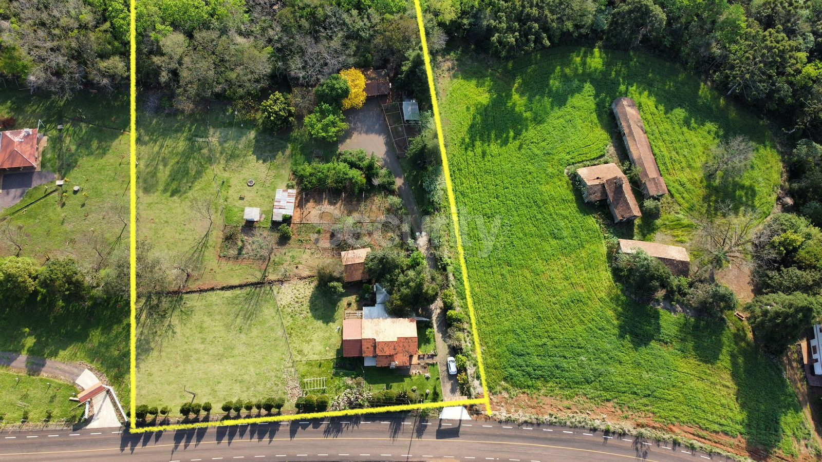 - Possui duas casas em alvenaria.